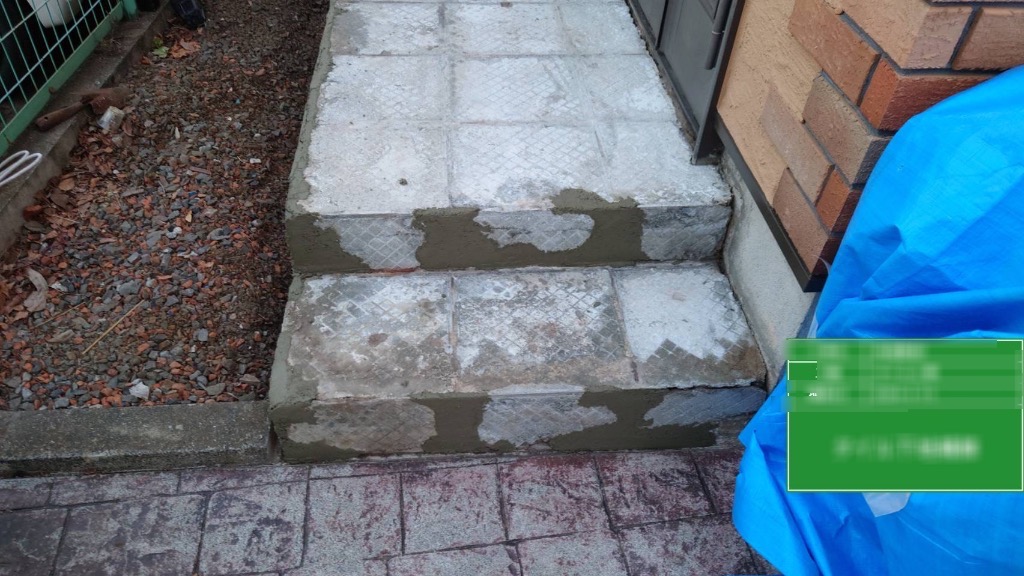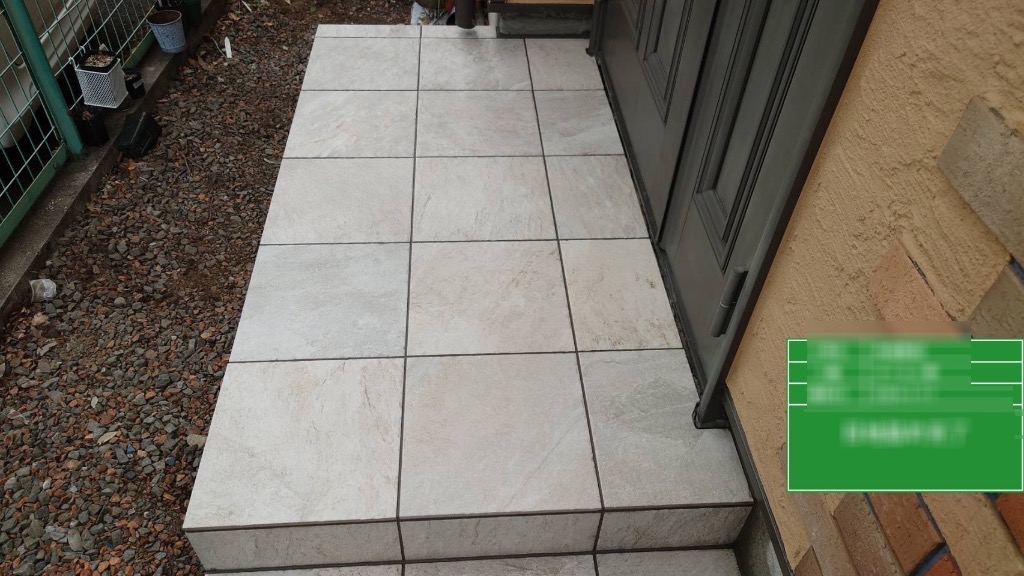 今回は外壁塗装、屋根工事を終えたお客様からお家がキレイになって玄関床のタイルの割れ、汚れが気になるとのご依頼、割れている所から浸水していて中に水が溜まっている状態でした!