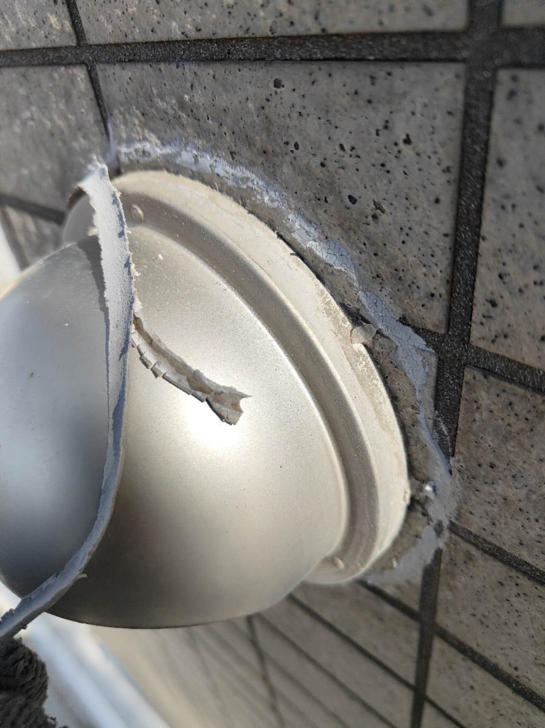 写真のように既存のシーリングが経年劣化によって、ヒビ割れ・剥がれ等が見られる場合は古いものを撤去し、新しく交換工事をすることをお勧めします!!
